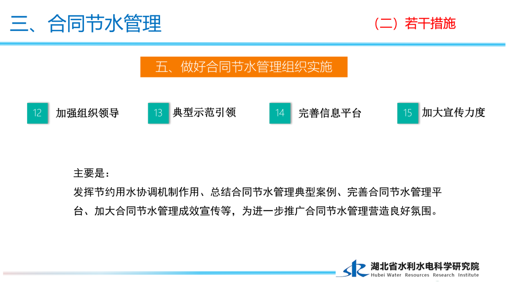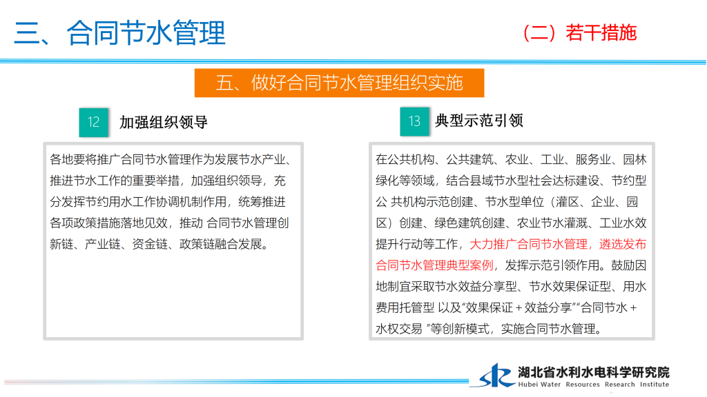 强化节水护水,宣贯落实《公共机构节约用水管理办法》,稳步推进节水型器具普及更新;鼓励公共机构委托市场服务机构提供节水技术改造、运行管理等服务,进一步释放公共机构节水市场需求。省机关事务局将在武汉都市圈规划推广水效领跑者先进经验,在学习贯彻《公共机构节水护水管理办法》上树典型。继续鼓励和支持全省公共机构开展能源费用托管服务,采取多种形式解读、宣传和指导应用《公共机构能源费用托管实施规程》行业标准,规范公共机构能源费用托管项目实施。省机关事务局将在襄阳都市圈推广绿色低碳公共机构典型做法,在学习落实《公共机构能源费用托管实施规程》上树典型,充分利用市场技术和资本产能节能,节支增效,引导推动更多能源费用托管项目落地,因地制宜推广打包托管和整县(区)托管模式,充分发挥规模效应。探索光伏等新能源利用市场机制,依托市场力量,扩大公共机构光伏建设规模。
